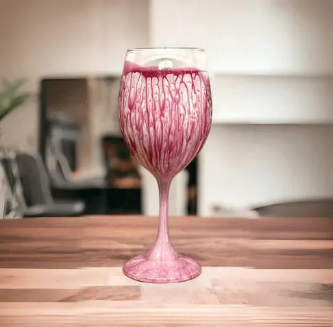 This stemmed wine glass is a glass intended for occasions from Dunkington Art & Jewelry. Each glass is painted, making each a design work to add to one's table setting. Crafted in vibrant colors and details, it can transform ordinary evenings into events.