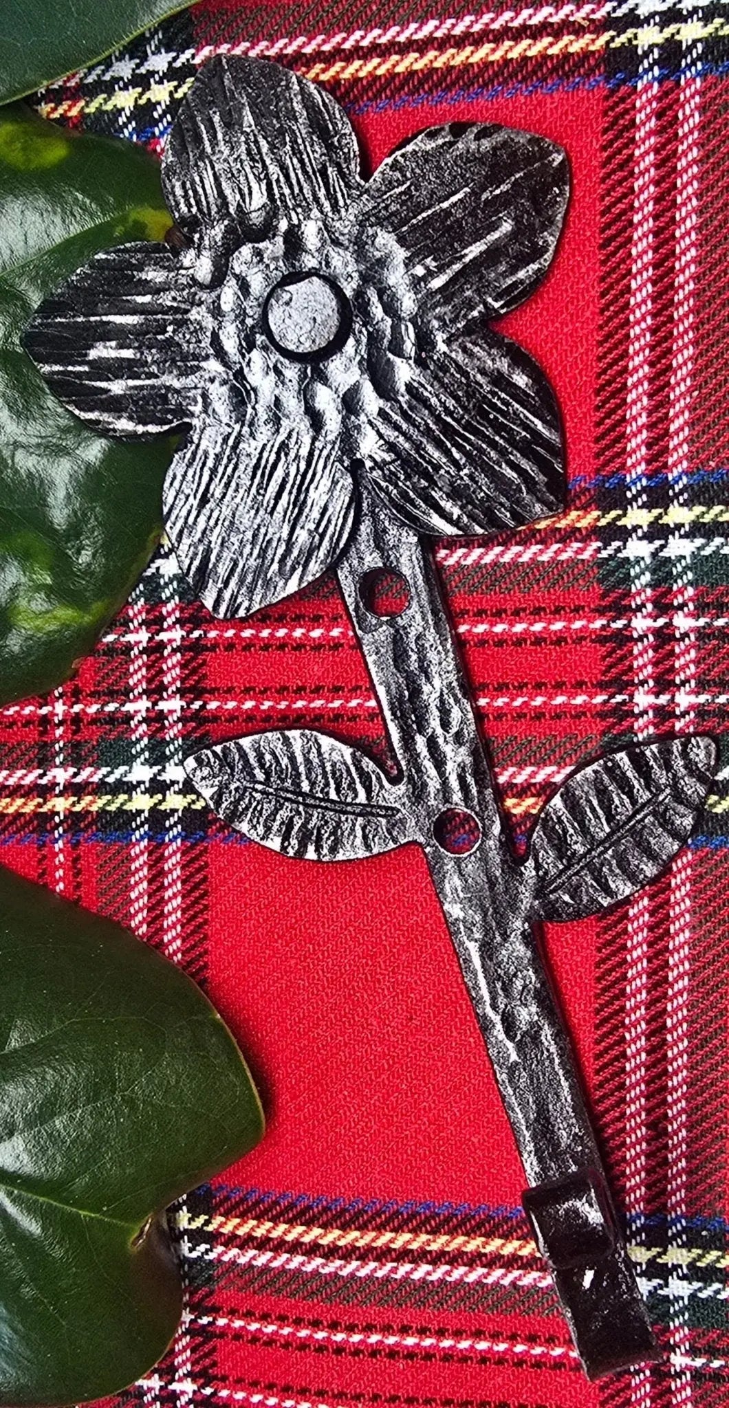 The hand-forged steel gives strength to the hook. The dark metal finish of the flower hook works indoors or in a garden shed. These hooks can hold towels in a bathroom or be used as a key hook near a door.