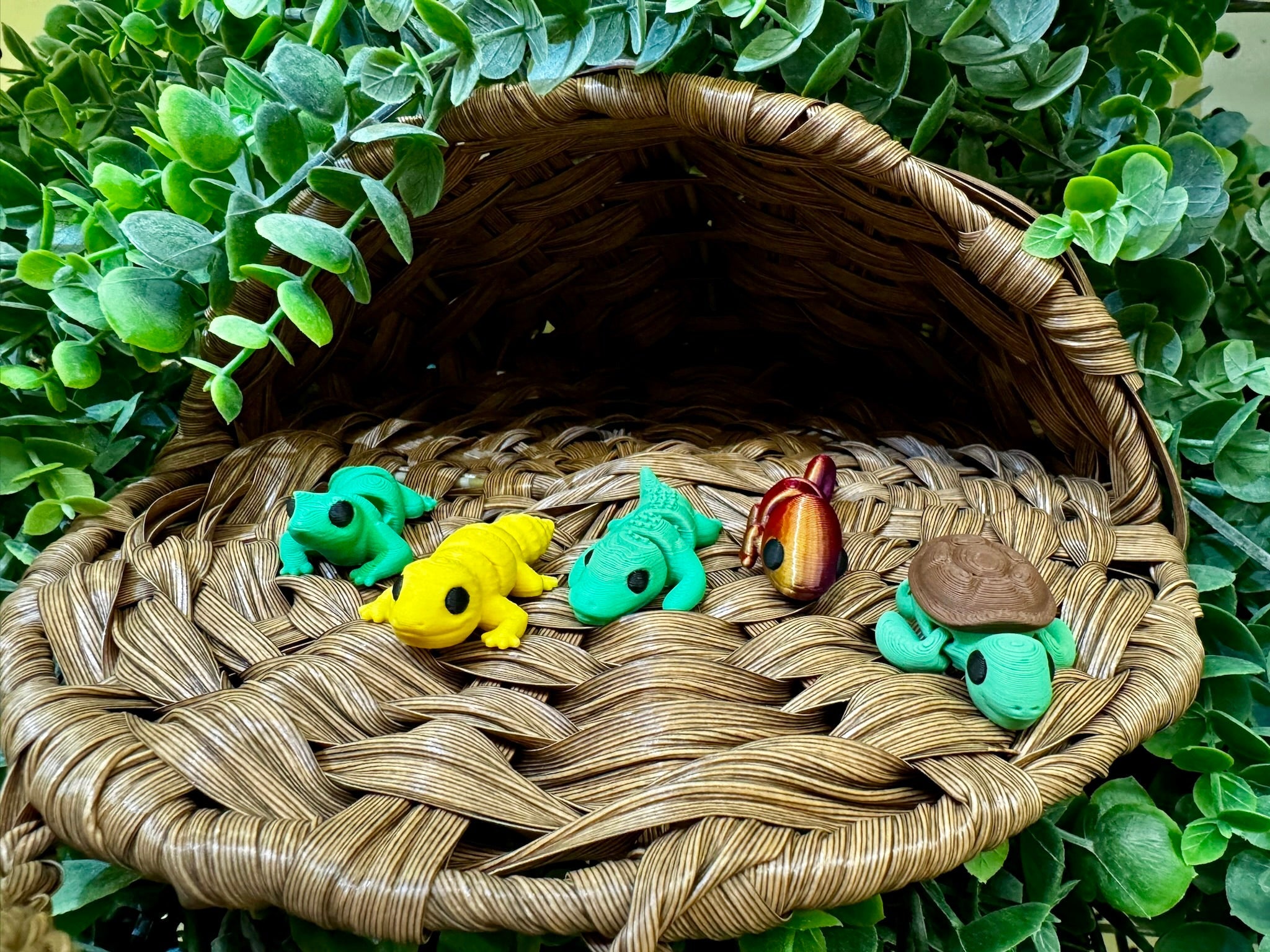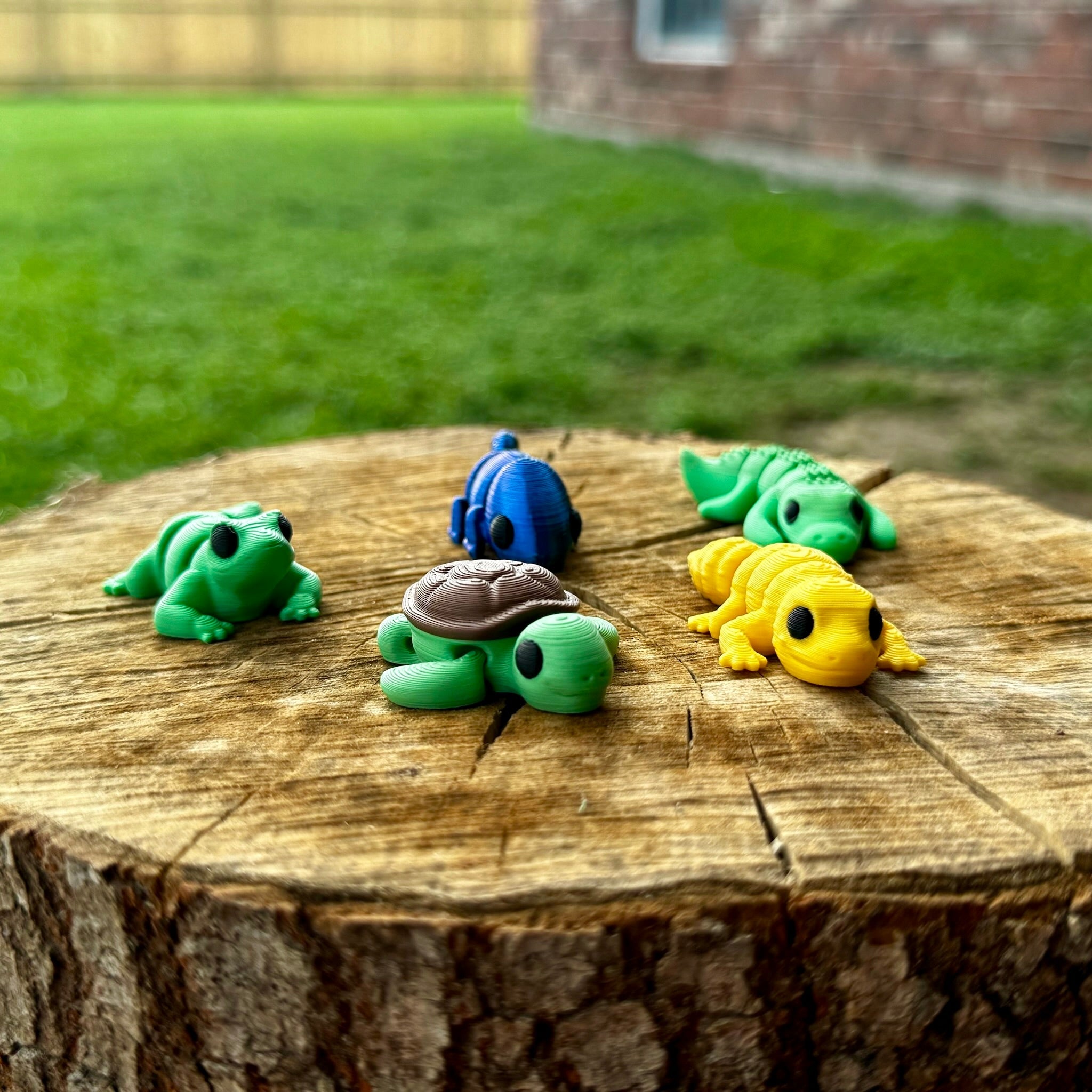 The Reptile Rascals Fidget Bundle offers a unique blend of sensory engagement and collectible fun. Handmade in Mississippi by Mushroom Lady Co., this bundle includes five mini reptile fidget toys perfect for kids and reptile enthusiasts. These 3D-printed critters provide a tactile experience that stimulates imagination and promotes relaxation.
