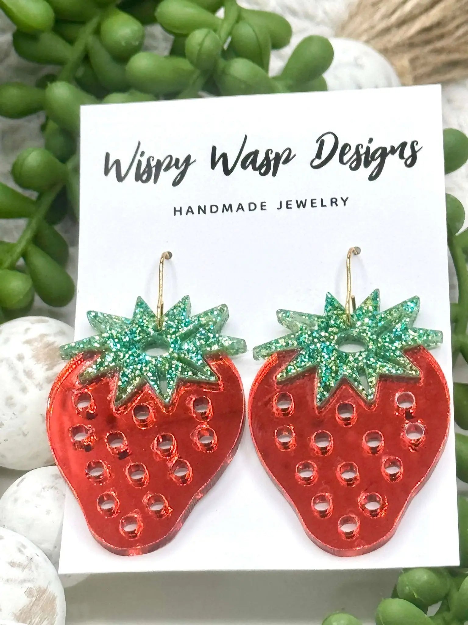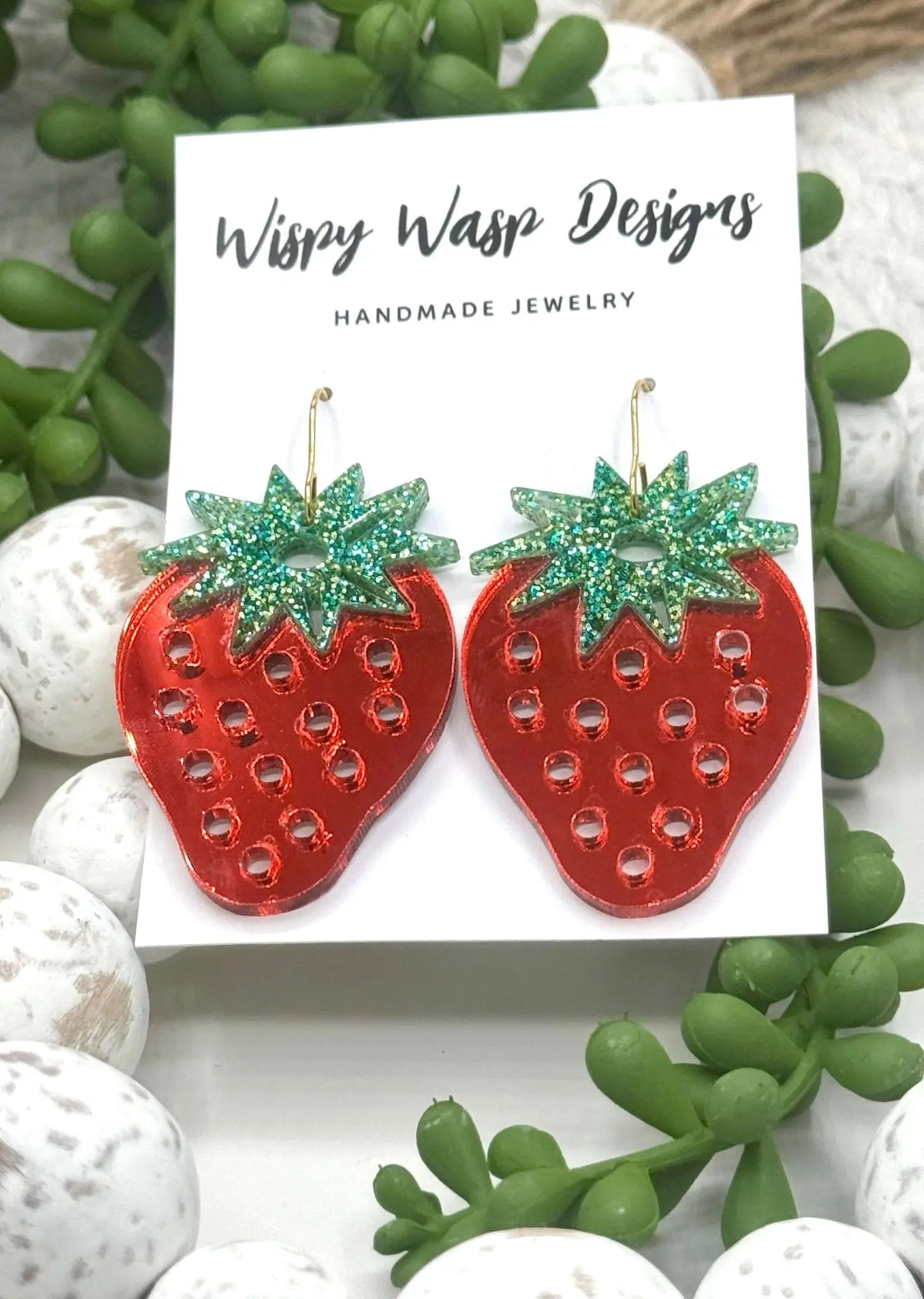 These playful earrings feature vibrant mirror and glitter acrylic that sparkle and catch the light, making you stand out. Handcrafted with love by Carrie of Wispy Wasp in Mississippi, these lightweight dangle earrings bring a touch of summer sweetness to any outfit.