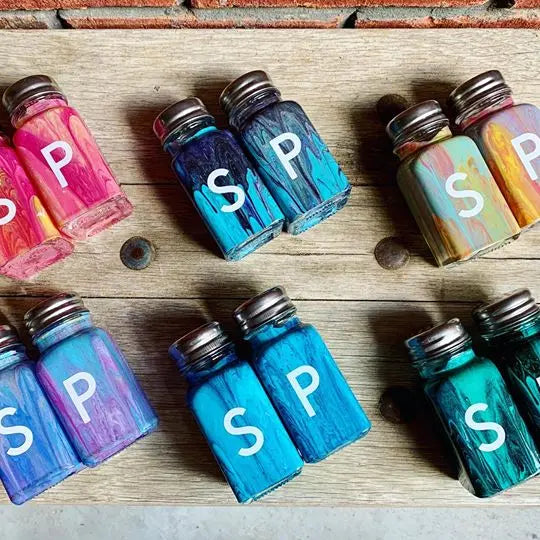 Crafted with high-quality acrylic paints and sealed with a durable, non-toxic resin, these shakers are built for everyday use. The resin finish ensures they are durable and safe, which is helpful during meals and gatherings. Each set is created through a hand-pouring process, so designs may slightly vary.