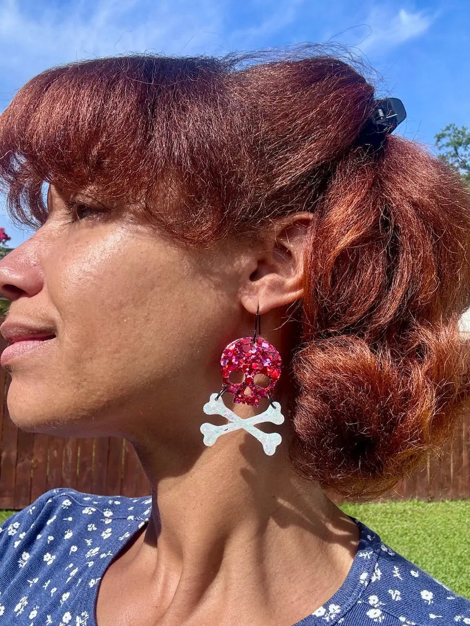 Add a spooky touch with these unique earrings that blend Halloween charm and handcrafted artistry. These earrings express your individuality and love for all things Halloween, adding a touch of Southern spirit to any outfit. High-quality glitter and resin make for durable construction and high visual appeal.