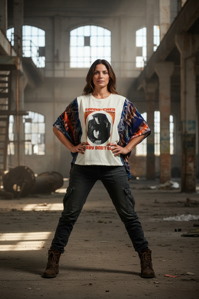 This one of a kind upcycle boho tee is perfect for the hippie in you! This is a custom made poncho style short with “batwing” sleeves that flow. Size small but fits large because of shirt style.