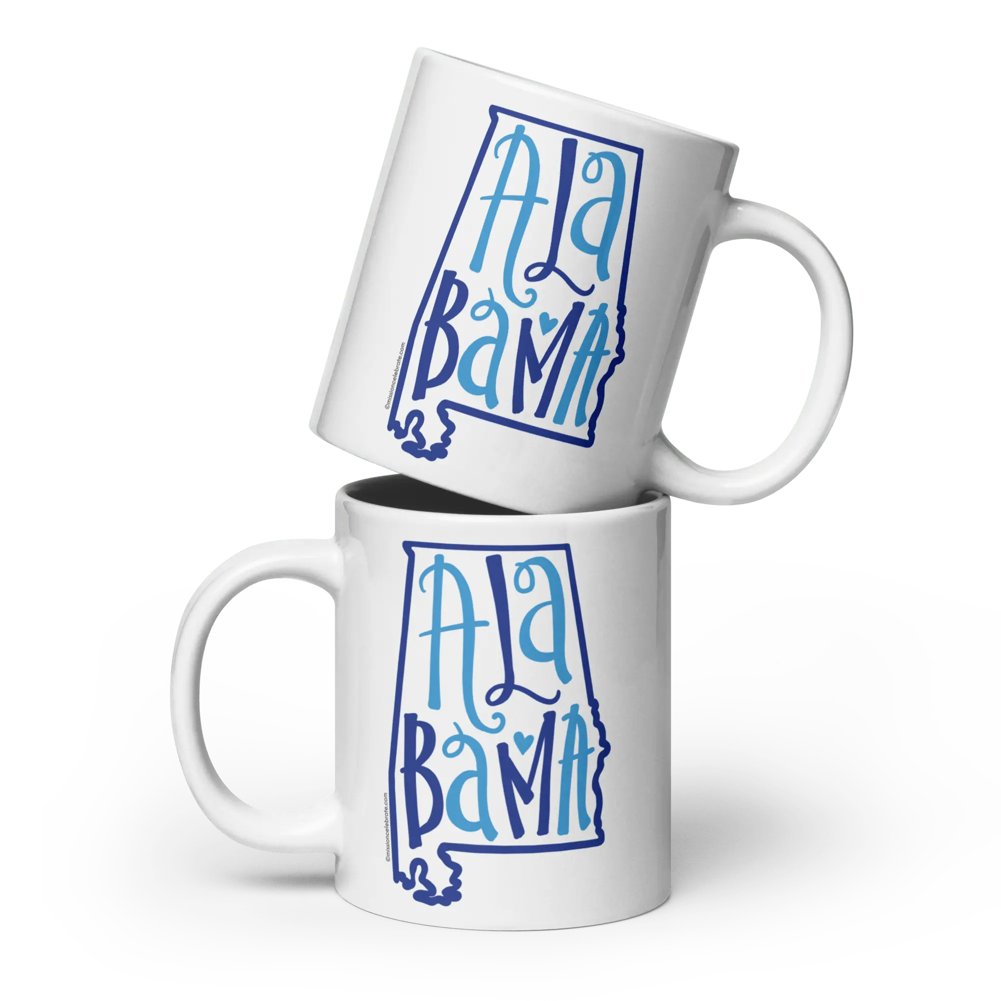 Ceramic Mug with Alabama Bouncy Letters Handdrawn Art (blues)