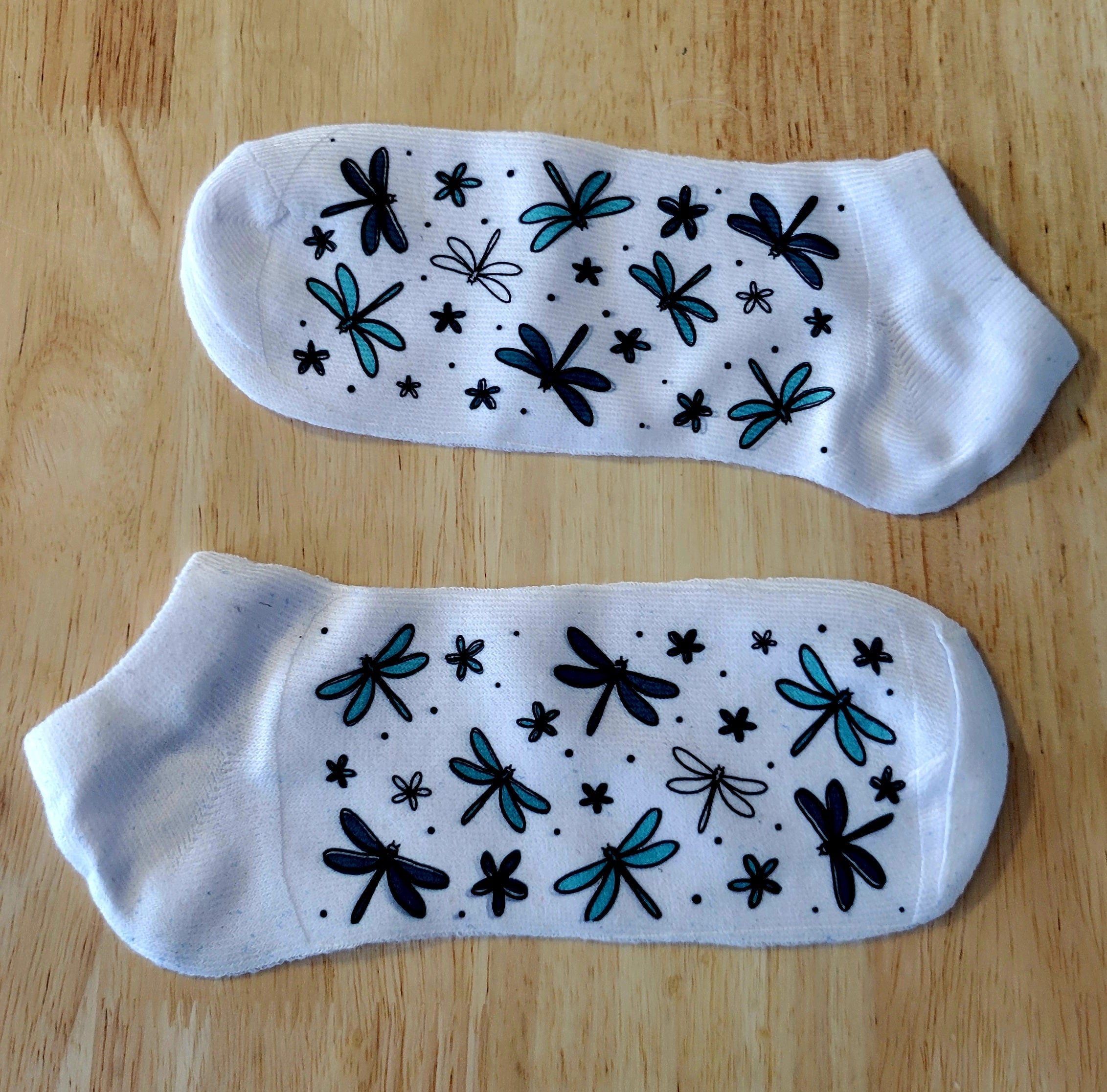 charming Dragonfly Bliss Ankle Socks. Delicate dragonflies