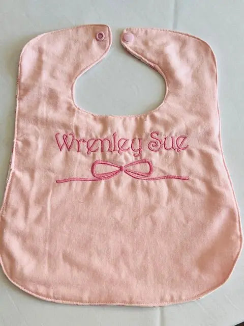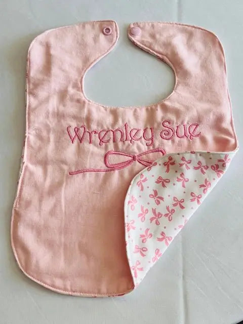 It's designed for sensitive skin and machine washable. The bib may be personalized with a name, monogram, thread color, and font style. You can design yours today! East Mississippi Creations designs each one.