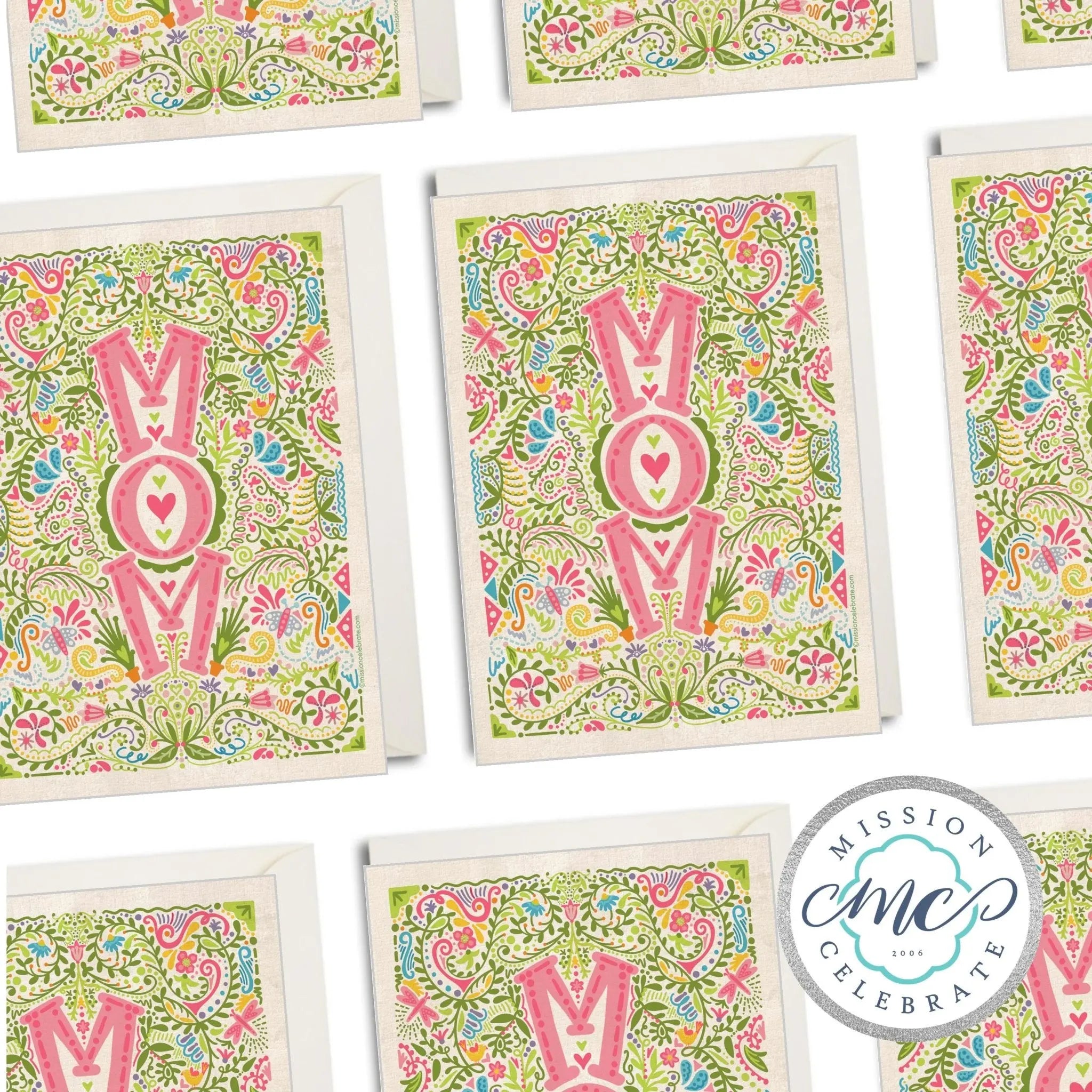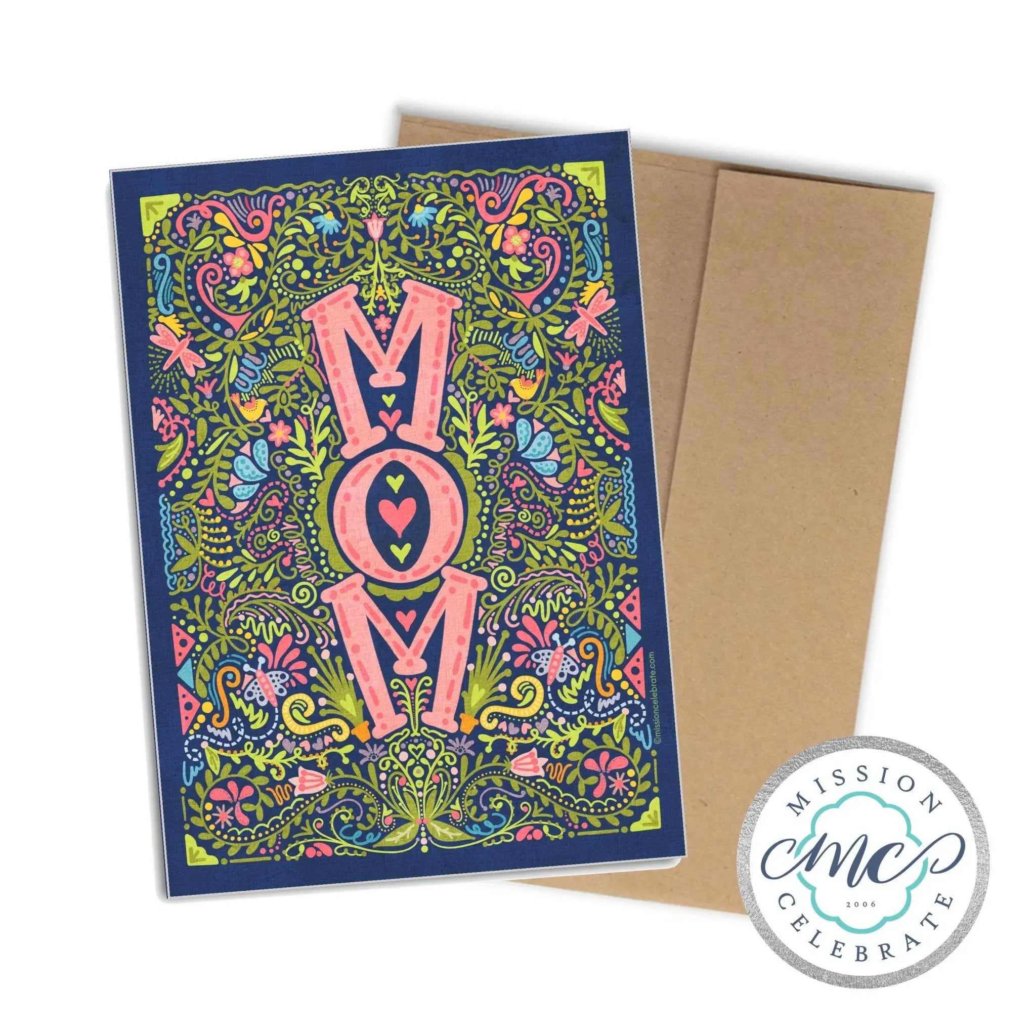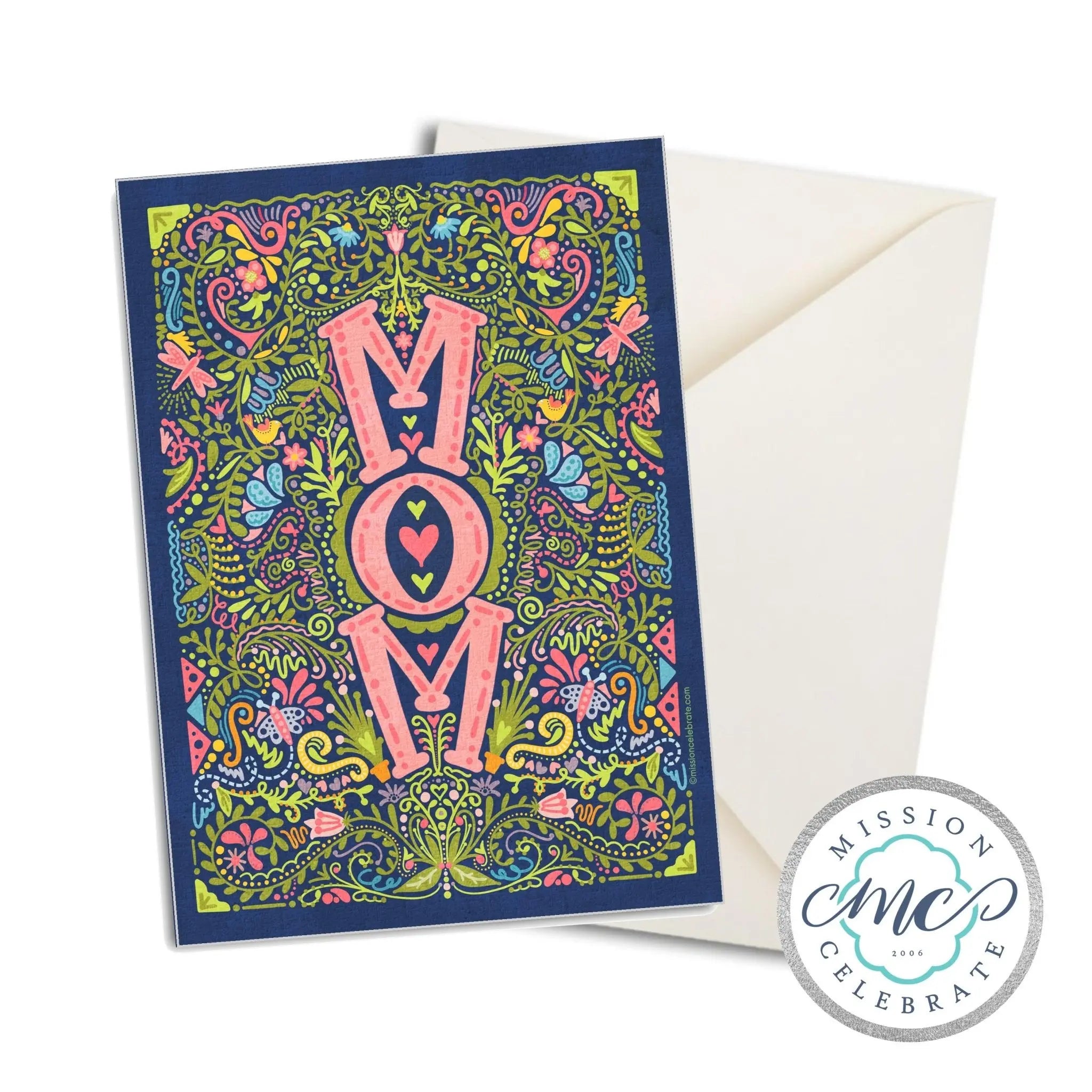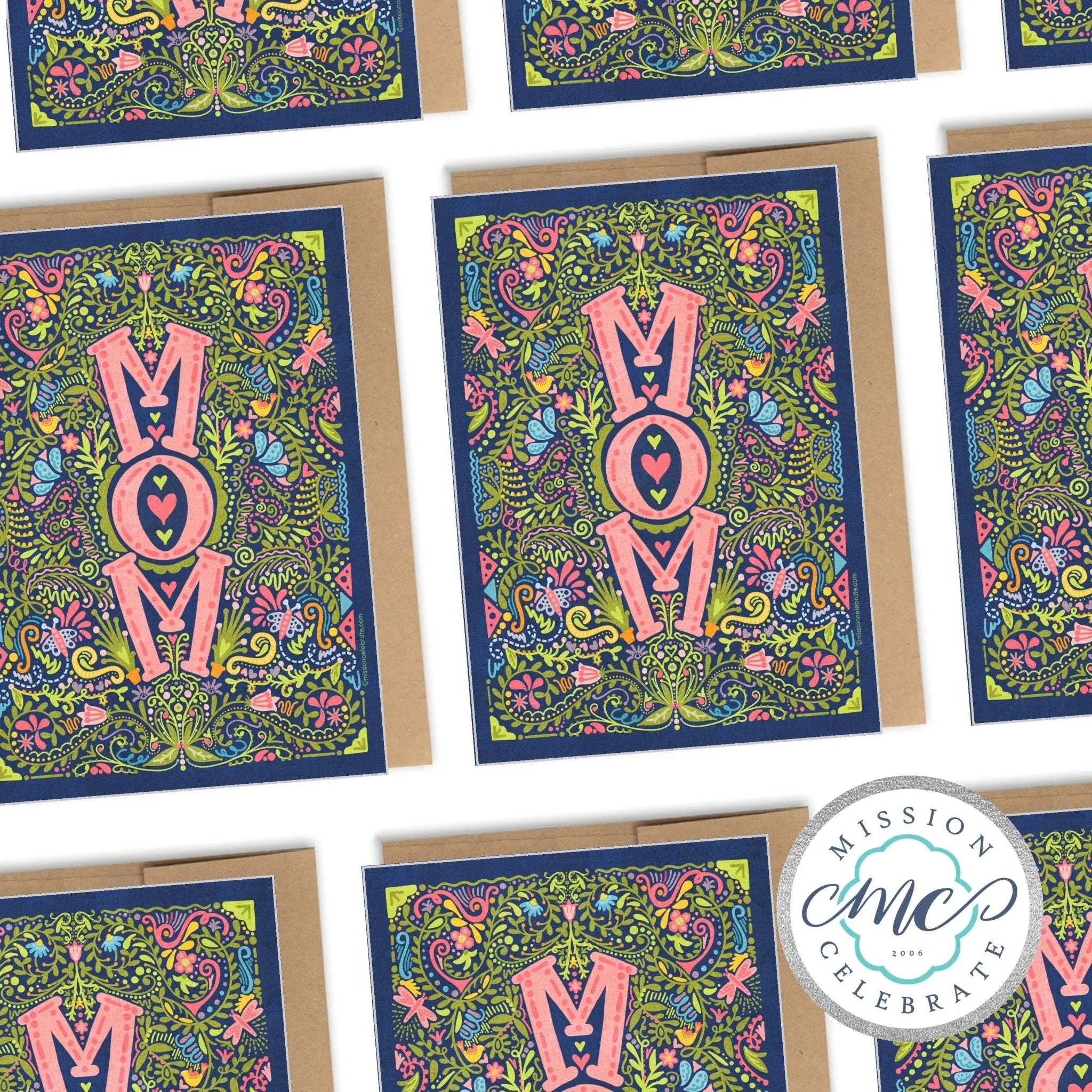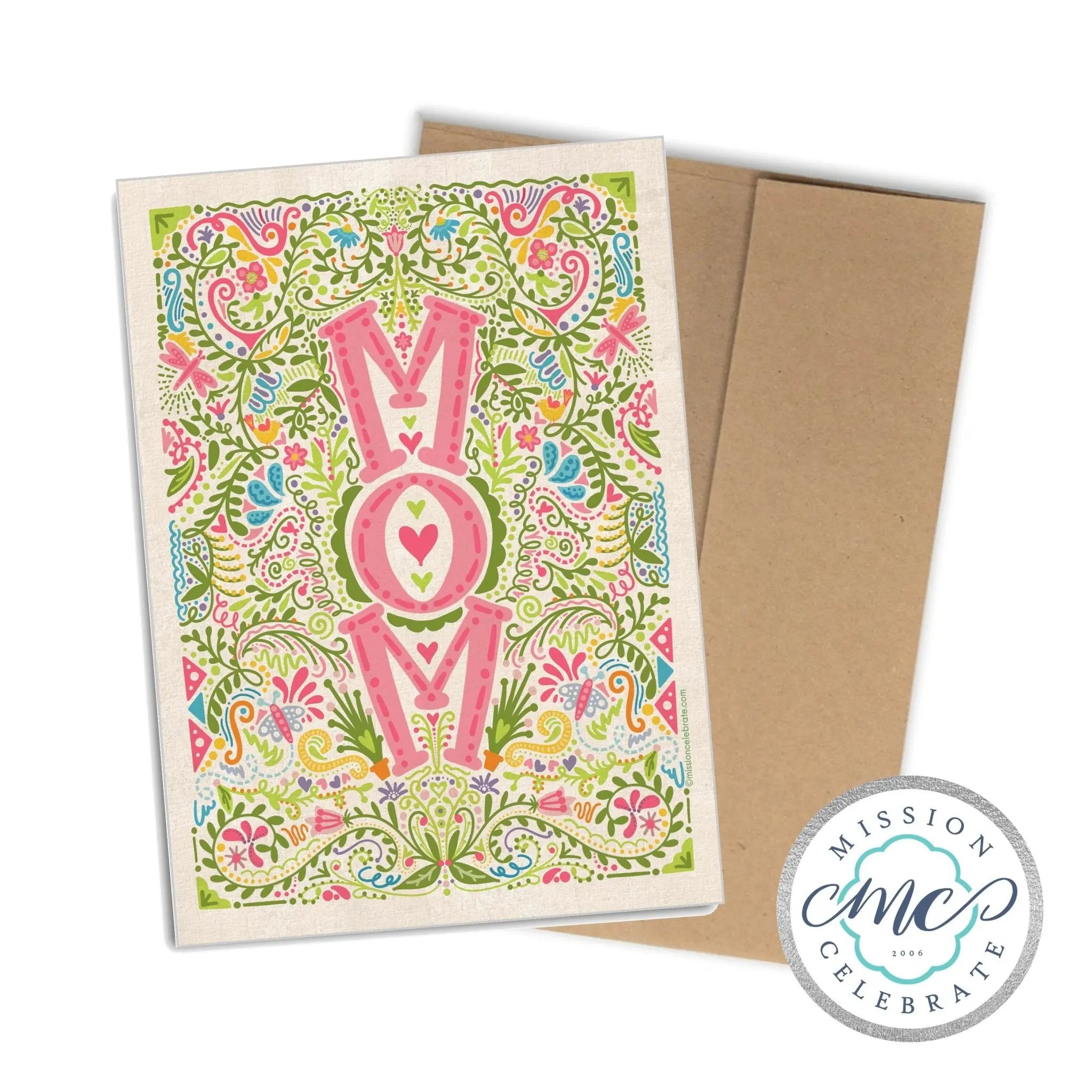 - Vibrant floral art that spells out "MOM."