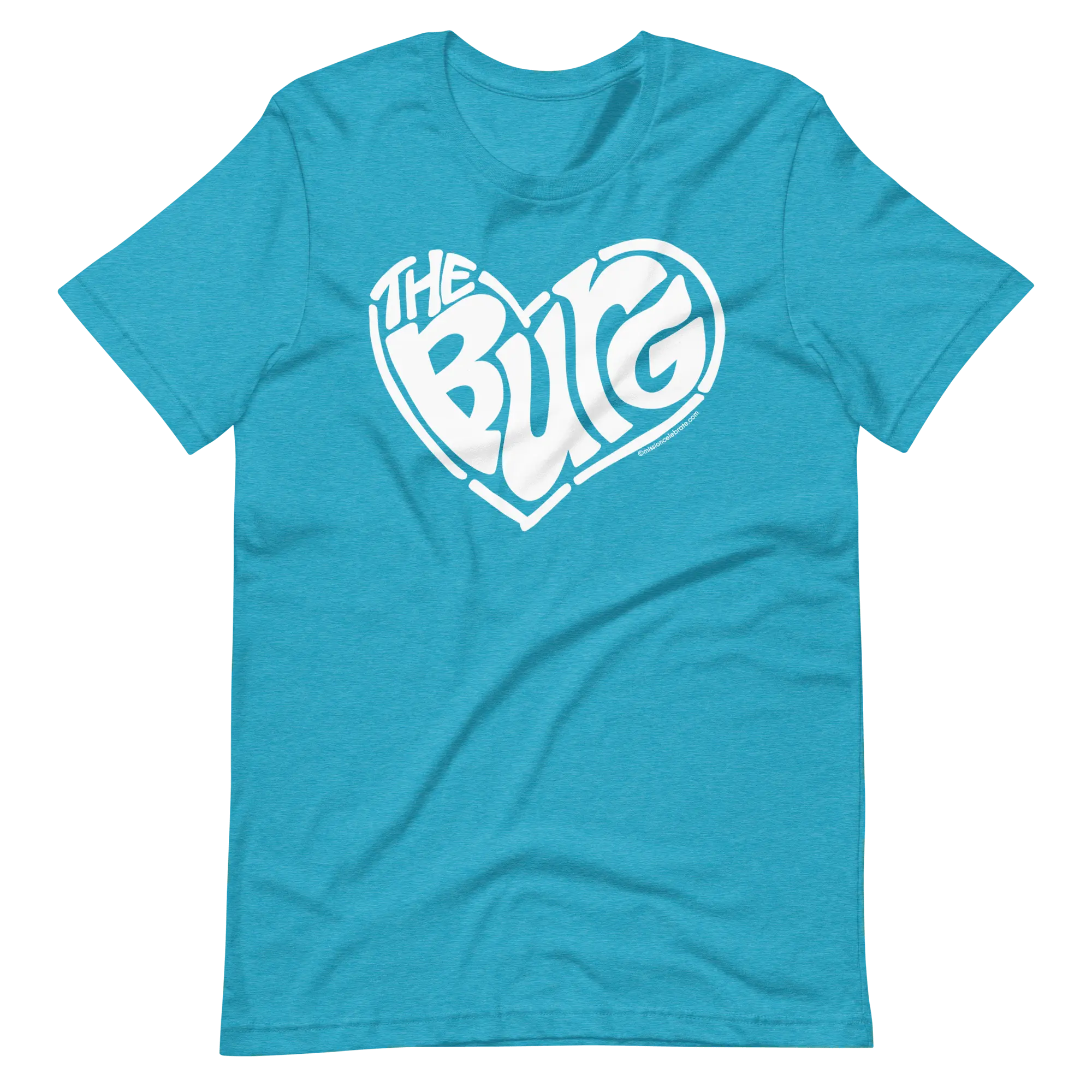 Hattiesburg The Hub City "The Burg" Handlettered Heart Art by © Leslie Gonce Bella+Canvas Short Sleeve Tee (MISSISSIPPI)