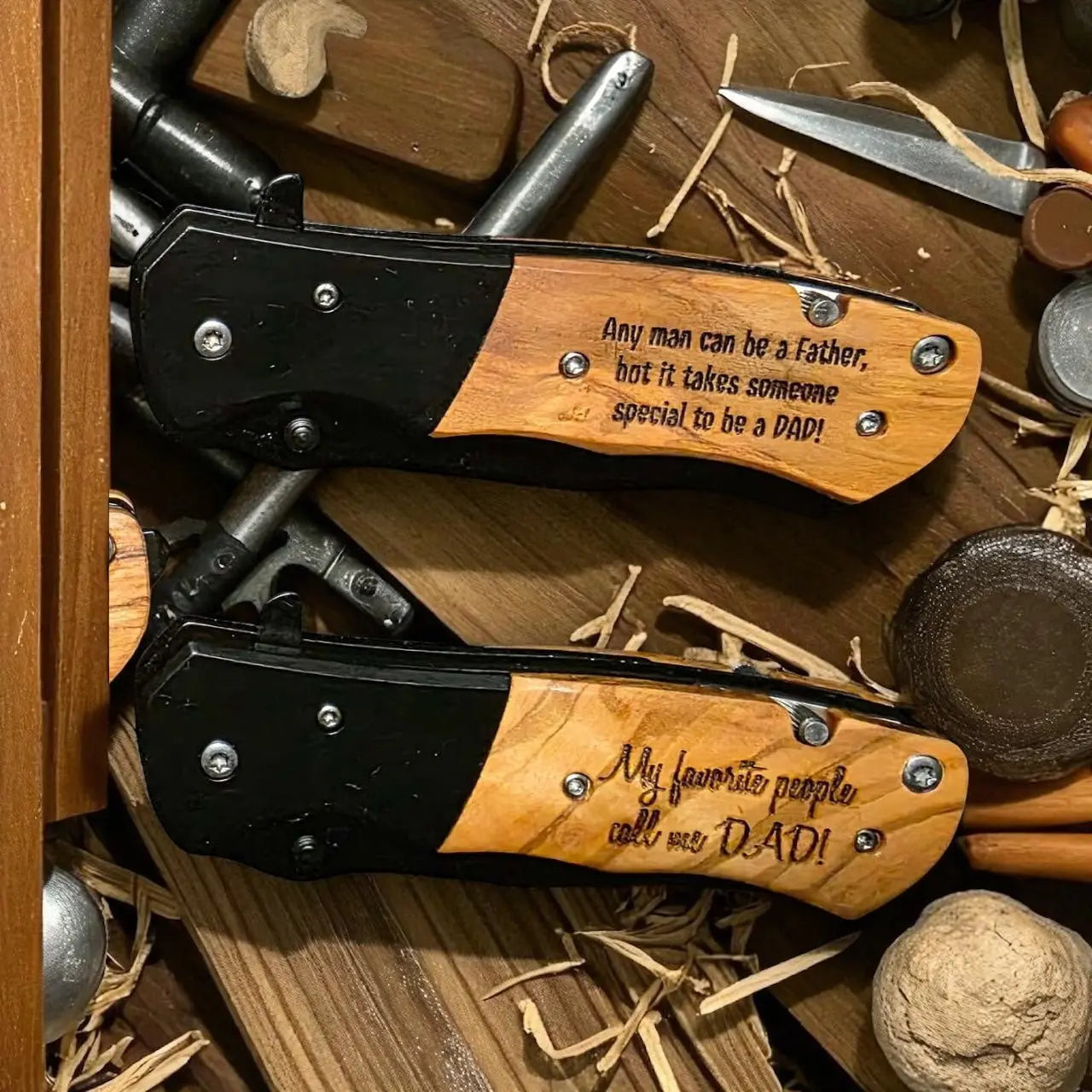 This custom pocket knife is suitable for everyday tasks and outdoor activities, and you can add a personal touch with custom engravings. It features a balanced weight for comfortable handling, making it easy to control and use.
