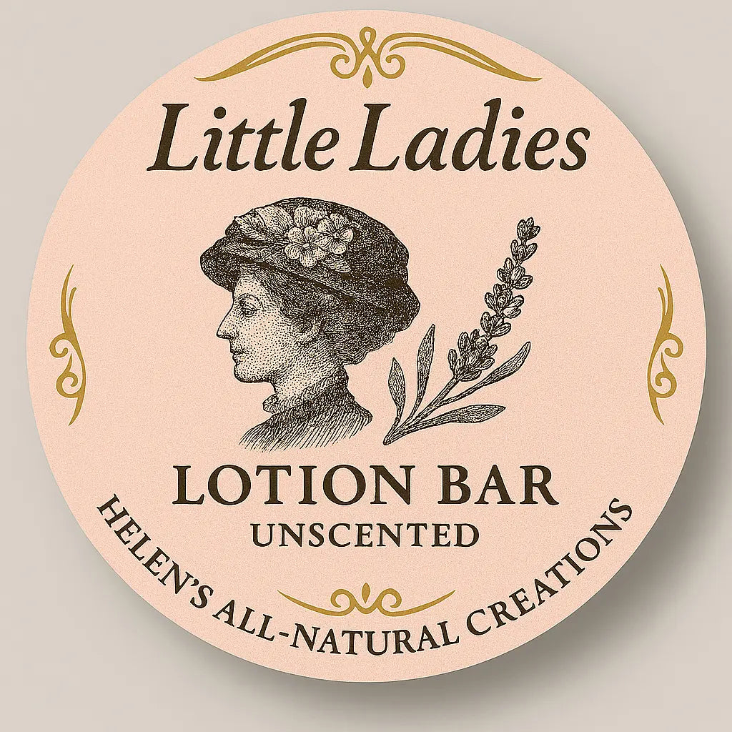 The lotion bar is molded in a Victorian lady shape and packaged in a reusable silver tin.