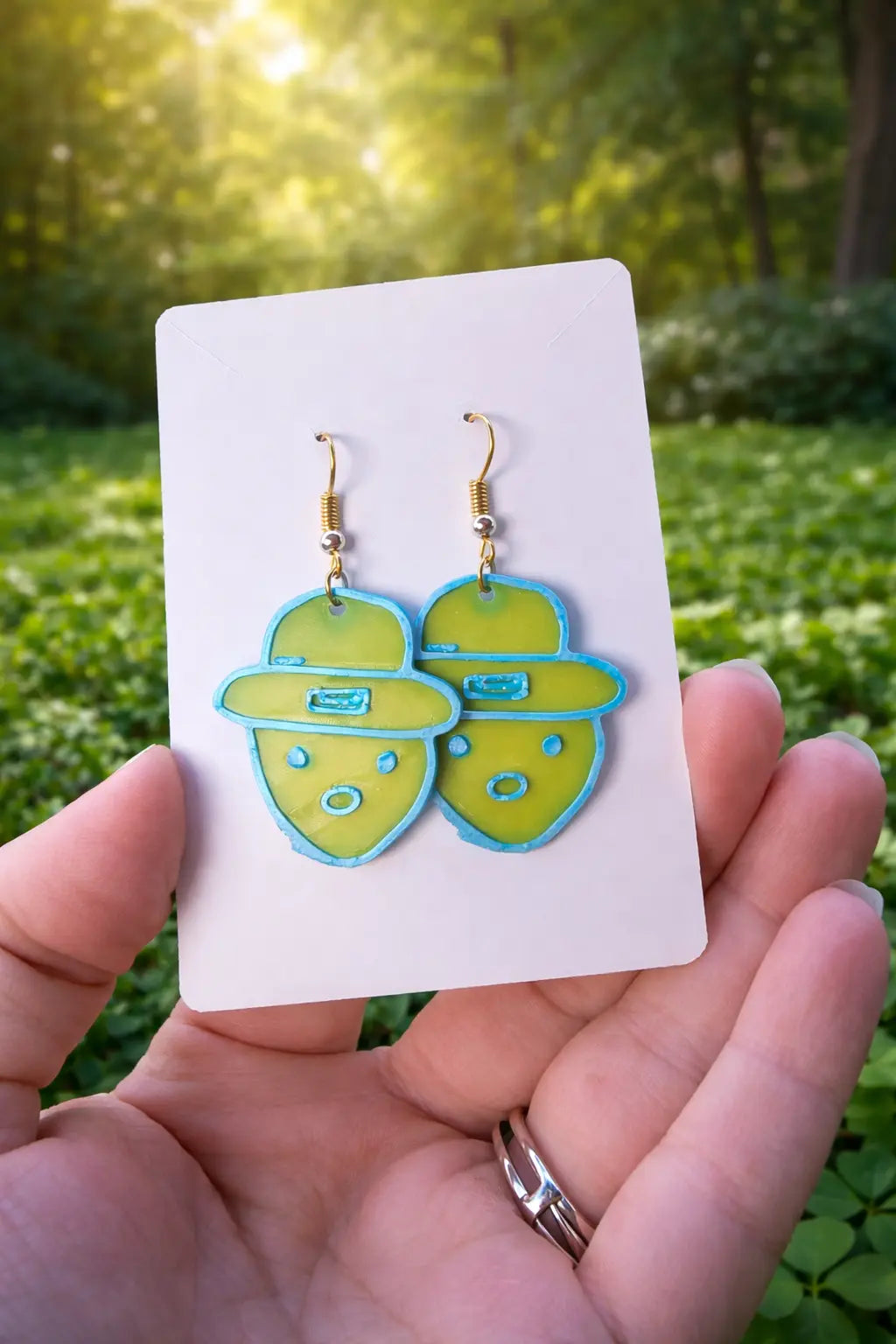 These Mobile Leprechaun earrings are handmade by kids at The Tween Space and inspired by the legendary Mobile, Alabama leprechaun sketch that became an internet classic. Featuring a playful leprechaun face with a hat in bright green and blue tones, this lightweight pair captures the humor, creativity, and local folklore that made the original story so memorable. Each pair reflects real kid creativity and hands-on making, offering a fun, wearable nod to Southern pop culture while supporting a kid-owned small business. Whimsical, nostalgic, and full of personality, these earrings are perfect for St. Patrick’s Day, festivals, or anyone who appreciates a good local legend.