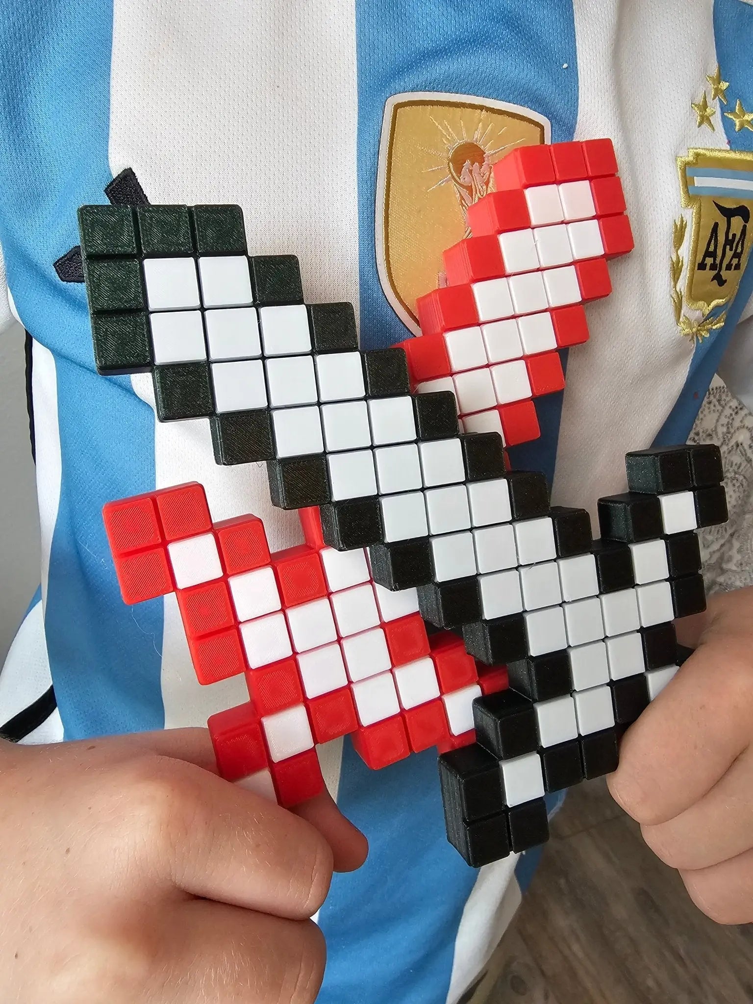 This toy is crafted by young entrepreneurs in Mississippi and is made of non-toxic PLA filament. Its lightweight design makes it a safe accessory for play and the plastic material won't stain surfaces. Purchasing the sword supports talented young creators.